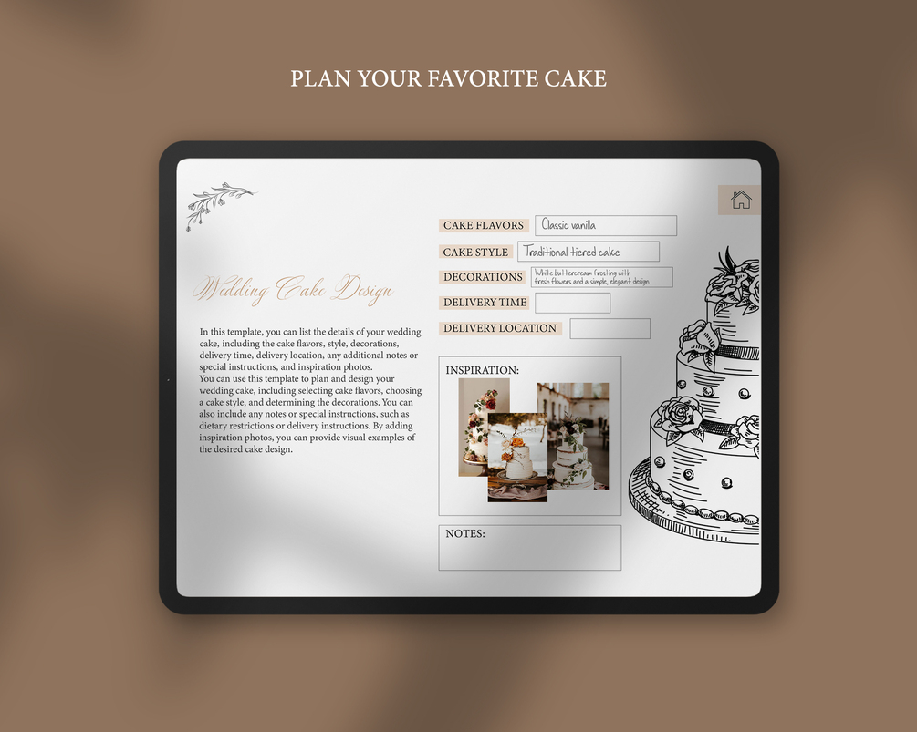 - Helps you design and order your dream wedding cake, including the flavors, decorations, and delivery details.